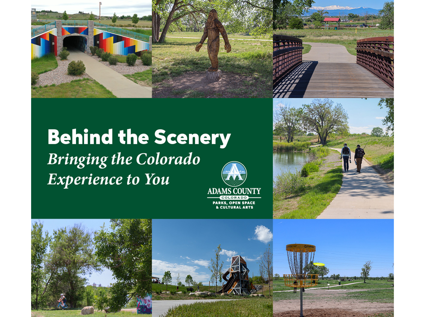 Thanks for stopping by the newest edition to the Parks, Open Space, & Cultural Arts website, Behind the Scenery. This space is dedicated to keeping Adams County residents updated on all the exciting things we are working on in the Parks, Open Space & Cultural Arts department. You may have heard about our community events like the Adams County Fair, our beautiful art projects, or our trails and open space properties, but we want to take a look Behind the Scenery of what we are planning next and highlight some of the work our staff do on a daily basis for our residents. This page showcases those projects and more as we work hard to significantly enhance quality of life, enrich communities, and INSPIRE!